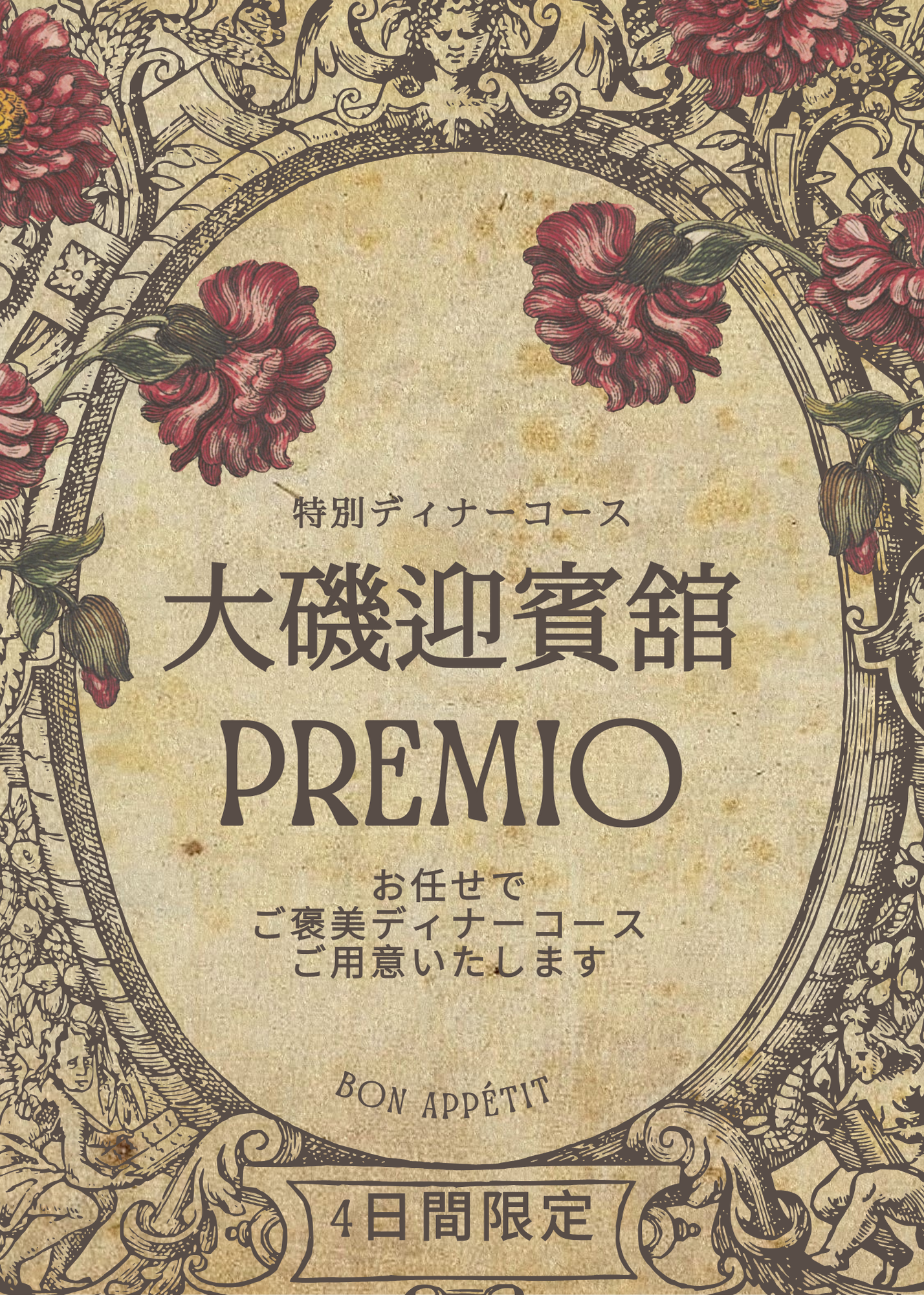 ARCHIVES 12/27~29 4日間限定 大磯迎賓舘ご褒美 特別ディナーコース Premio(プレミオ)
